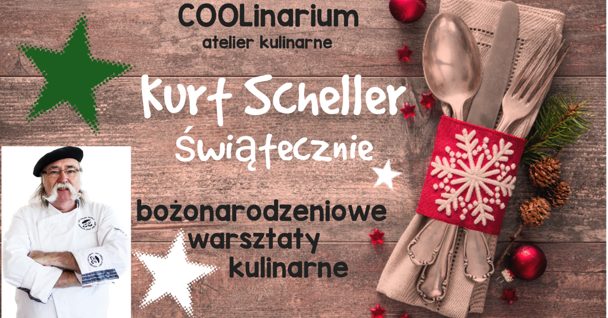Atelier kulinarne COOLinarium ma ogromny zaszczyt zaprosić wszystkich miłośników kuchni na niepowtarzalne, świąteczne warsztaty kulinarne, które poprowadzi jeden z najwybitniejszych i niepodważalnych autorytetów kulinarnych w Polsce – Kurt Scheller.